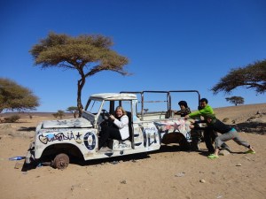There were some surprises too, for example that as of last year they now have cell phone service in large parts of the desert. My phone got better reception there than at Times Square in New York! That was a relief, as I’d hate to get stranded in the Sahara, as beautiful as it is. I was also caught off-guard by how alive the desert was. There was hardly a moment when we were truly alone. Every 15 minutes we would encounter a herd of camels, a group of nomads fetching water from a fountain, another 4×4 jeep… so I guess it’s true what they say: if you get lost in the desert, stay where you are. Eventually someone will find you. (Or not, if this car below is anything to go by…)